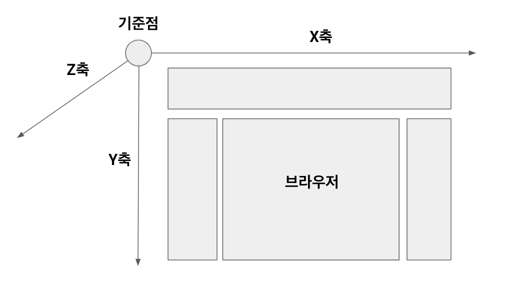 Z축은 모니터에 있는 사용자의 방향을 가리킨다.