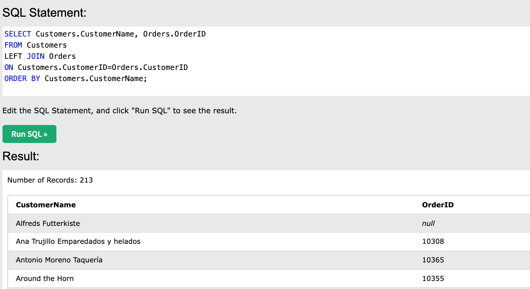 OrderID가 null인 CustomerName은 오지 않았다.