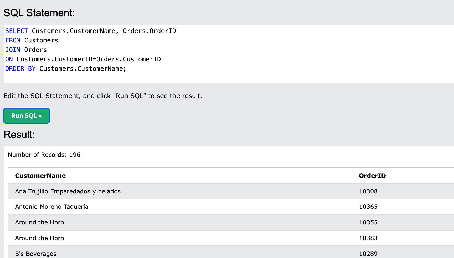INNER JOIN Customers ON Orders.CustomerID = Customers.CustomerID)