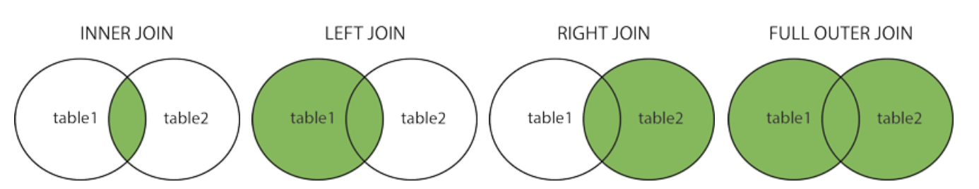- FULL (OUTER) JOIN: Returns all records when there is a match in either left or right table
