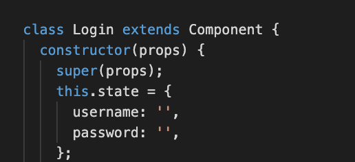 Login 컴포넌트(지금 작업하려는 컴포넌트 이름이다)는 Username, password 이렇게 2의 상태값을 갔는다.
