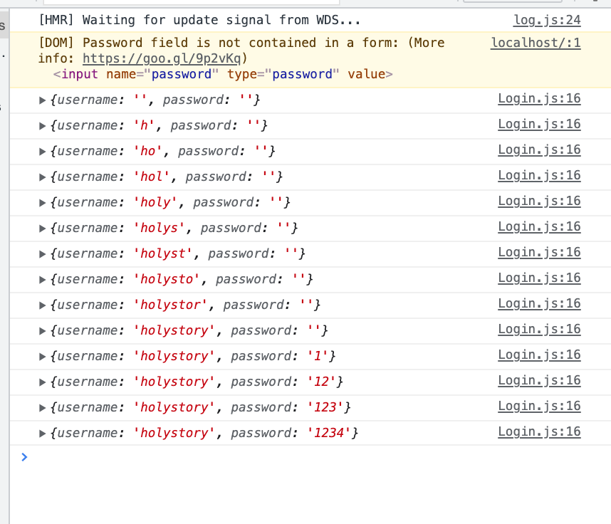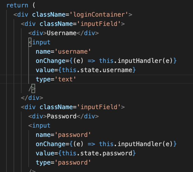 그리고 Username와 Password가 입력될 때마다 onChange 되는 이벤트 함수는 inputHandler로 동일하다.