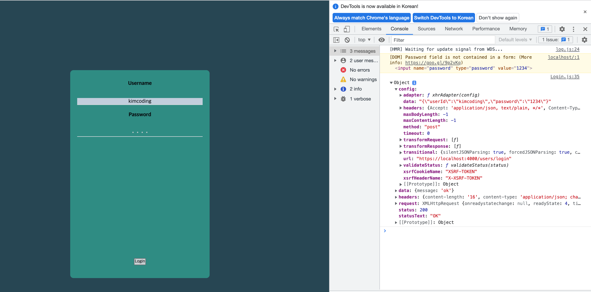 post 요청 후에 결과값을 콘솔로 찍어 보았다.