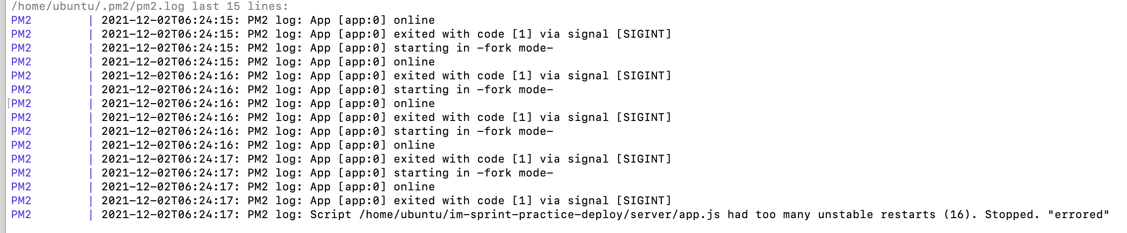 had too many unstable restarts'라는 오류 메세지를 주고 Stopped 처리 해버렸다.