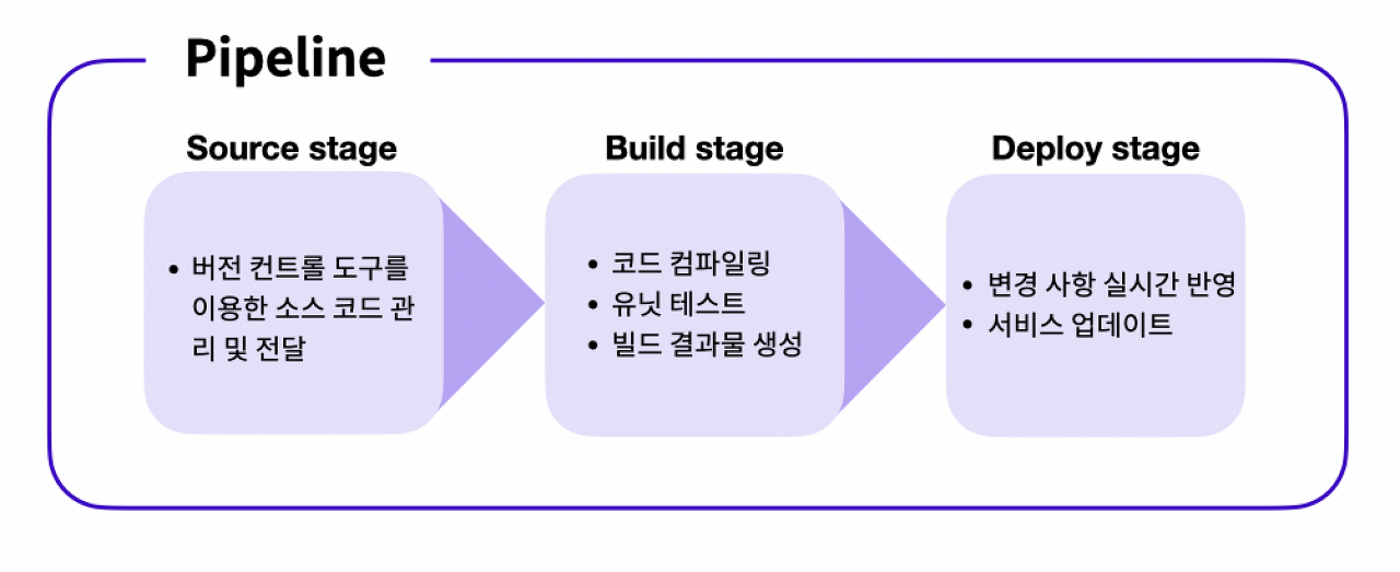 파이프라인은 소스 코드의 관리부터 실제 서비스로의 배포 과정을 연결하는 구조이다.