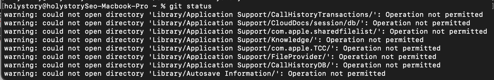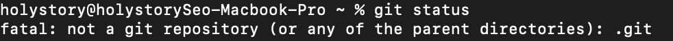 git status로 현황을 조회하니 git repo가 아니라고 한다. 그렇다면 의심이 되는 부분이