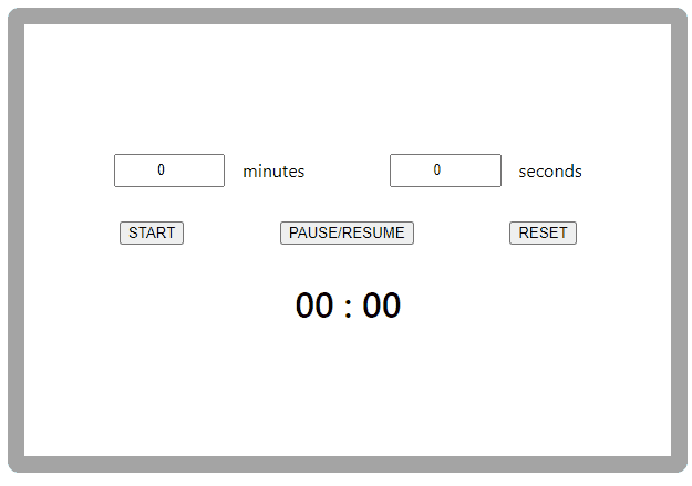 1. seconds를 입력할 때 60초를 넘겨서 입력하면 초과한 초를 제외한 나머지는 분(minutes)으로 합산된 상태로 타이머가 작동되어야 합니다.