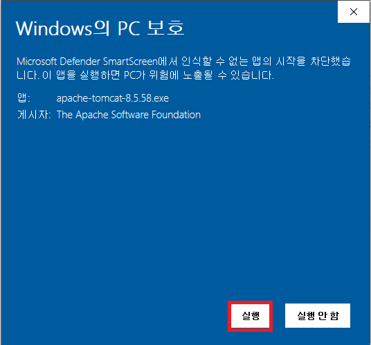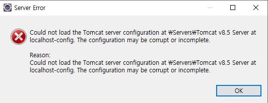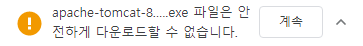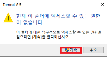 Tomcat위치로 가서 폴더를 실행하시면 해당 문구가 뜨는데 계속을 눌러주고 이클립스로 돌아가서 다시 위치를 지정해줍니다.