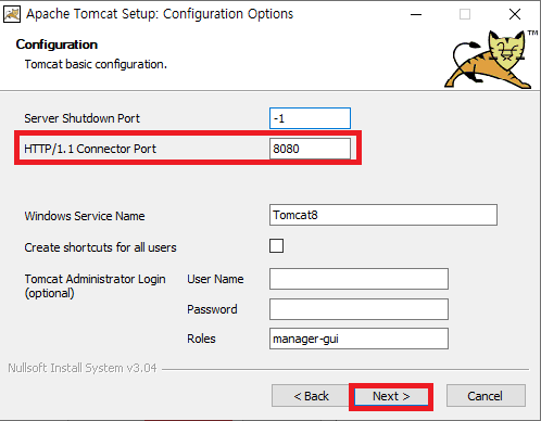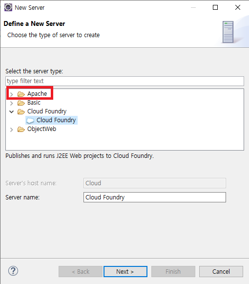 Apache 선택 -> Tomcat v8.5 Server 선택 -> Next 선택