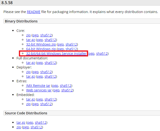 8.5.58에 있는 32-bit/64-bit Windows Service Installer 선택