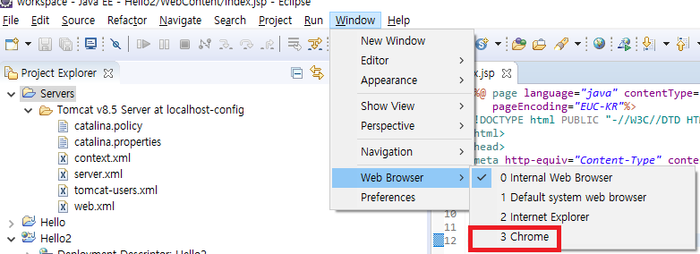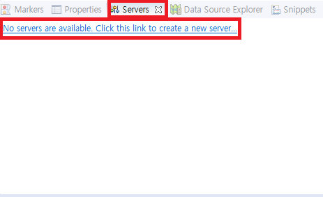 이클립스 본문 하단에 Servers 선택 후 No servers are avaliable. Click this link to create a new server 선택