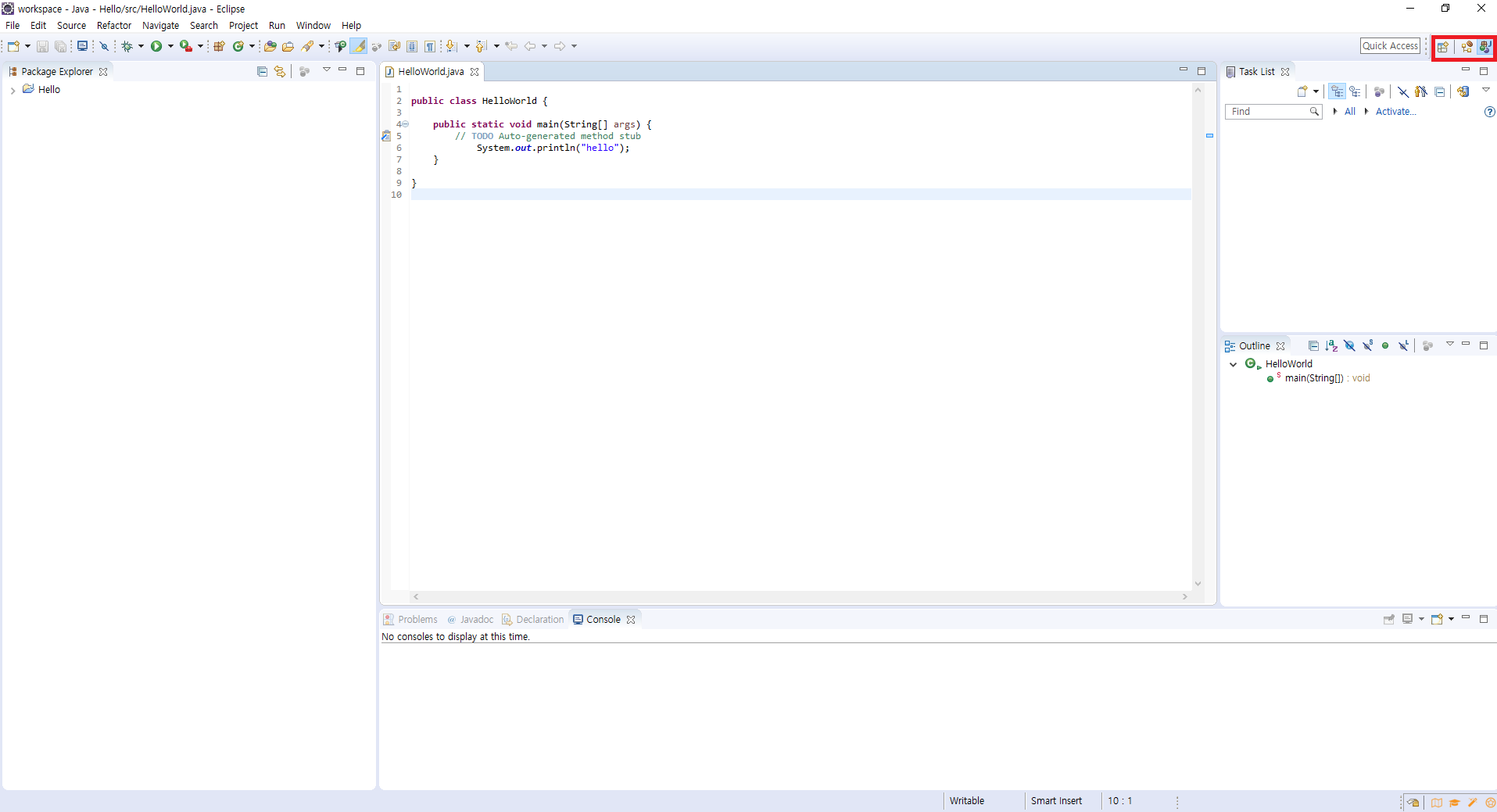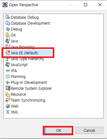 eclipse를 실행 하셔서 오른쪽 위에 있는 Open Perspective를 선택