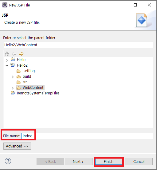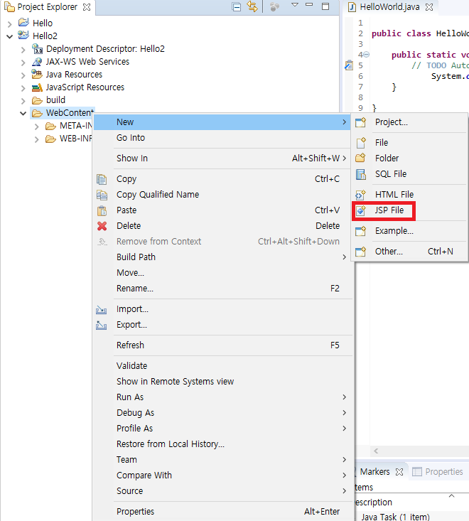WebContent 오른쪽 마우스 -> New -> Jsp File 선택