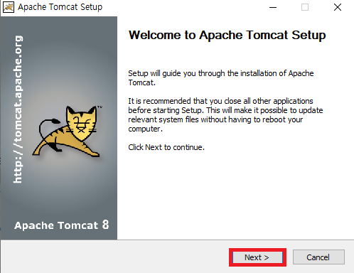 주소창에 http://localhost:8080/을 입력하시고 밑에 창이 뜨면 성공적으로 Tomcat이 다운된것입니다.