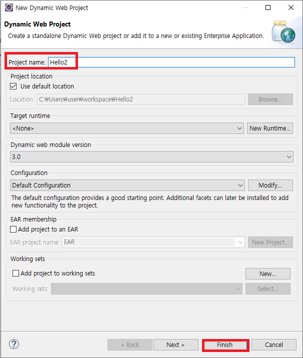그러면 에러가 없어지고 Next와 Finish가 활성화가 되었는데 Finish를 선택해 줍니다.