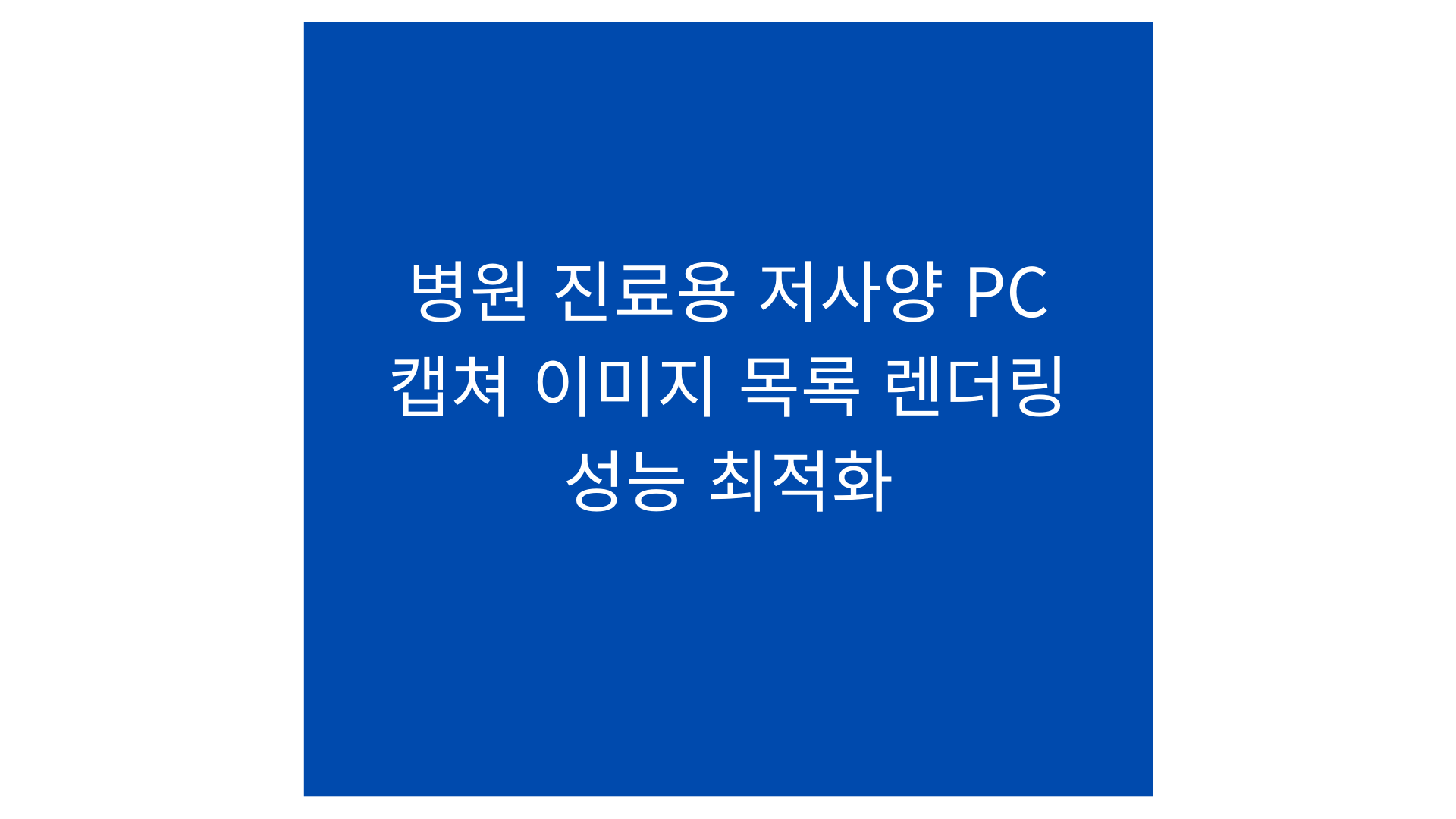 최근 당사와 연계된 병원 한 곳의 시스템을 점검할 기회가 있었습니다. 특히 오래된 병원에서는 IT 인프라가 낙후되어, 성능이 매우 낮은 PC를 여전히 사용하는 경우가 많았습니다. 이런 저사양 환경은 우리가 제공하는 촬영 모듈의 성능에 직접적인 영향을 주었고, 사용성에도 큰 지장을 초래하고 있었습니다.