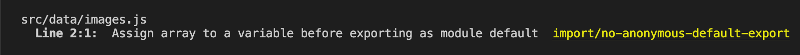 변수로 컴포넌트명 선언해주고 export 하면 에러메세지 사라진다.
